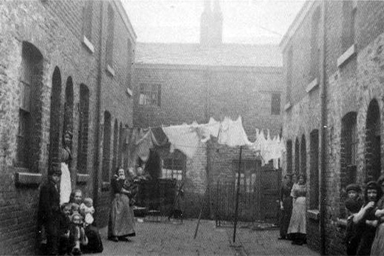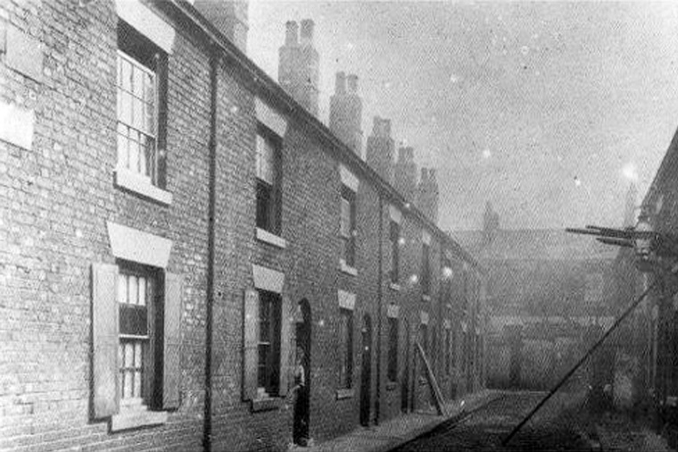 Friedrich Engels was the heir of a German cotton manufacturer who had come to work for the Ermen & Engels factory in Weaste, Salford, three miles from Hulme though he worked in the firm's offices in Manchester. He made Little Ireland infamous throughout the world as a disastrous slum despite it being relatively short-lived (a little over 30 years) and other areas of Manchester having worse housing, poverty and disease. Little Ireland was a small slum between Oxford Road, the Medlock and the railway serving Oxford Road Station, mainly inhabited by Irish immigrant workers. Described at length by Engels, he estimated that there was one inaccessible privy for every 120 residents. "The cottages are old, dirty and of the smallest sort, the streets uneven, fallen into ruts and in part without drains or pavement; masses of refuse, offal and sickening filth lie among standing pools in all directions; the atmosphere is poisoned by the effluvia from these, and laden and darkened by the smoke of a dozen tall factory chimneys. A horde of ragged women and children swarm about here, as filthy as the swine that thrive upon the garbage heaps and in the puddles." Reinforcement of the Medlock to protect the factories raised the level of the river above the surrounding residential hovels leading to frequent flooding with filthy river water. Hulme was also described by Engels: "the more thickly built-up regions chiefly bad and approaching ruin, the less populous of more modern structure, but generally sunk in filth."