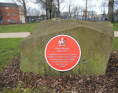 In 1904, two businessmen known as Henry Royce and Charles Stewart Rolls created a business partnership after meeting at Manchester's Midland Hotel and decided to start to build their own versions of the relatively new invention of the motor car - and chose Hulme for their first Rolls-Royce factory, though moving to Derby shortly afterwards. Many street names in the current Hulme commemorate this little piece of history, such as Royce Road and Rolls Crescent, though the Royce public house, a popular drinking establishment with a distinctive ceramic historical 'mural' was razed for the creation of modern flats, in the 1990s regeneration of Hulme.